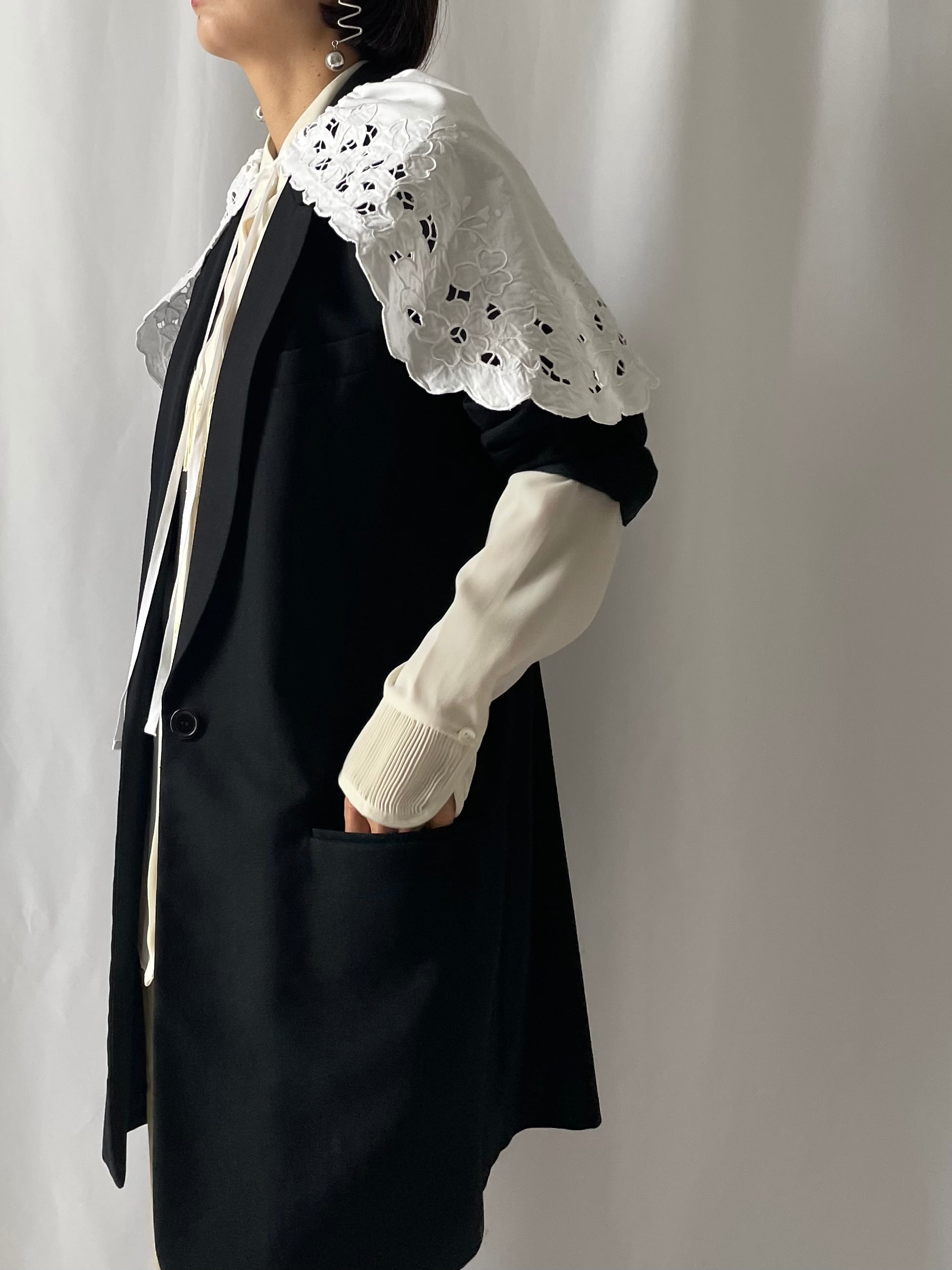 カットアウトレースやスカラップデザインが映える1着。