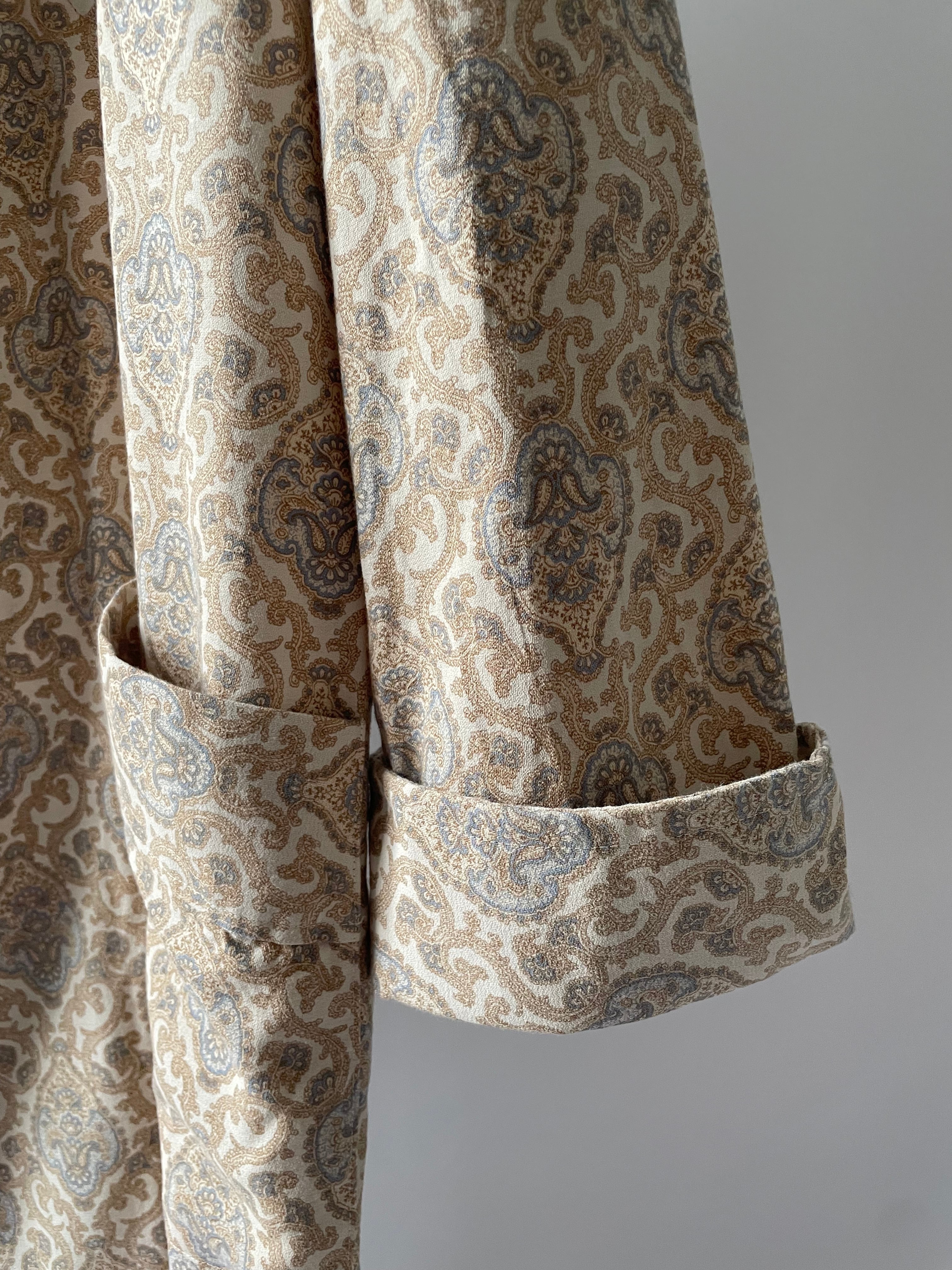 ベージュとブルーグレーに、複雑な曲線模様が特徴的なペイズリー柄。