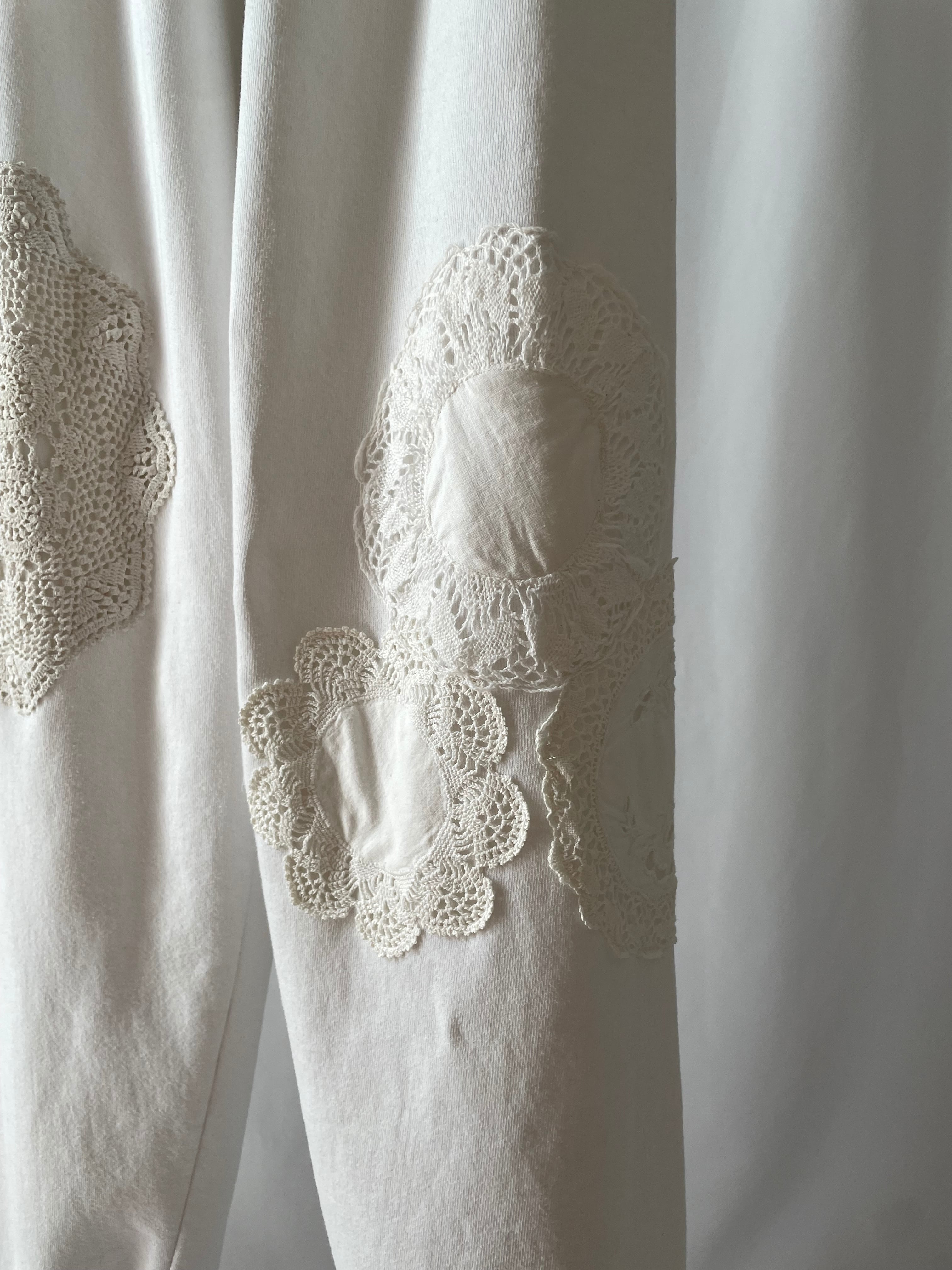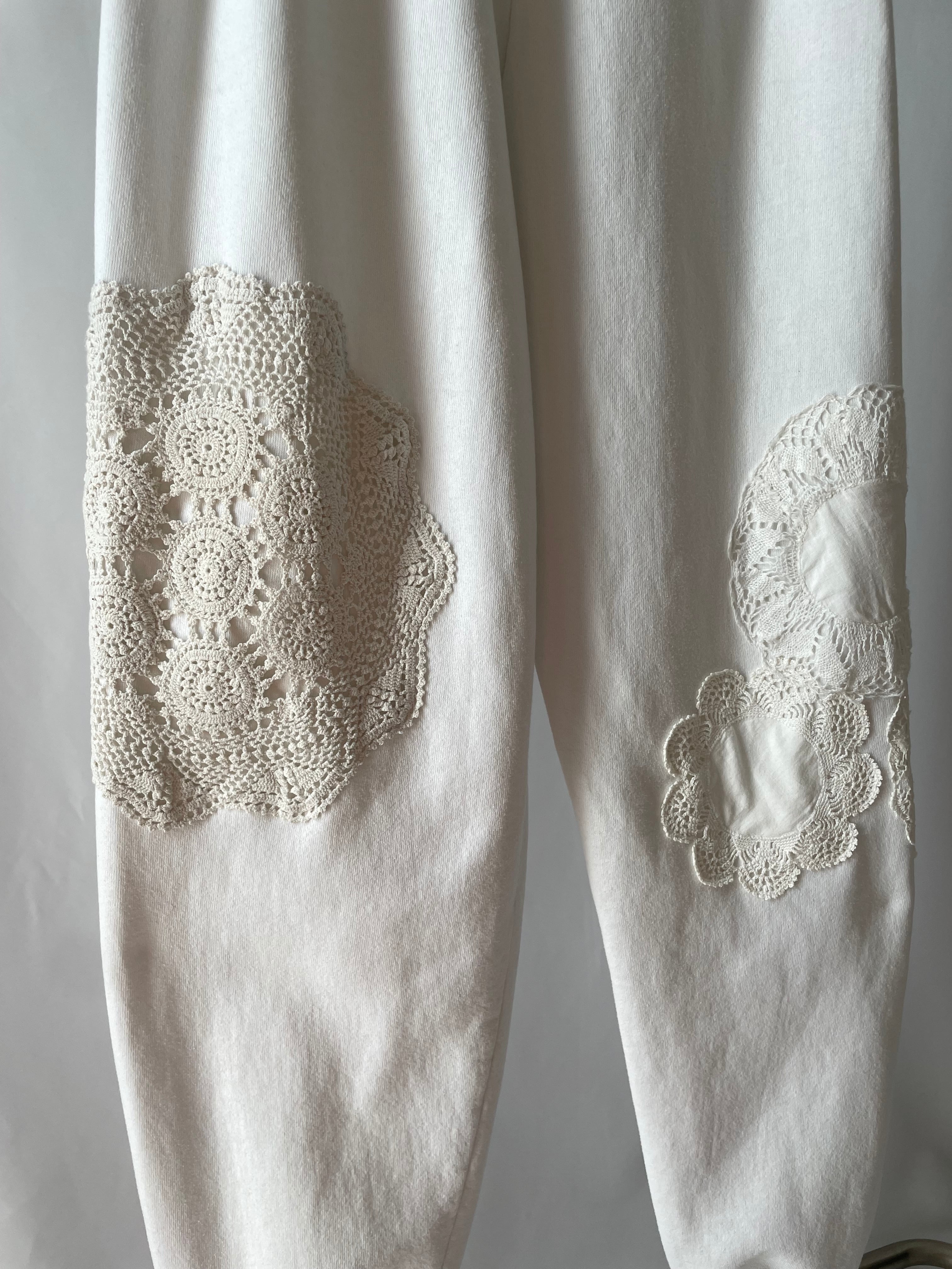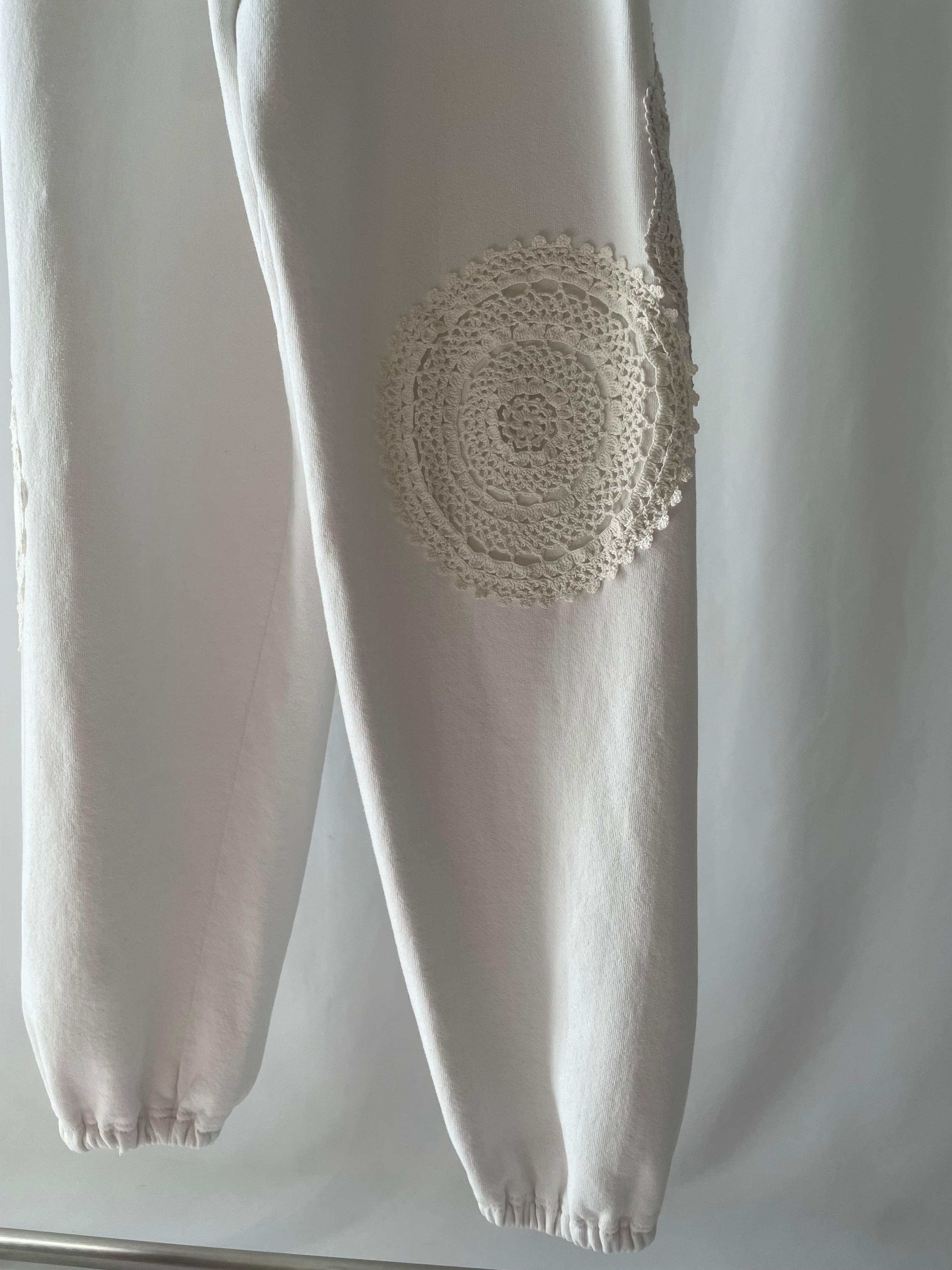 ベースは少し裏起毛で暖かく、肌触りのいいホワイトのスウェットパンツです。