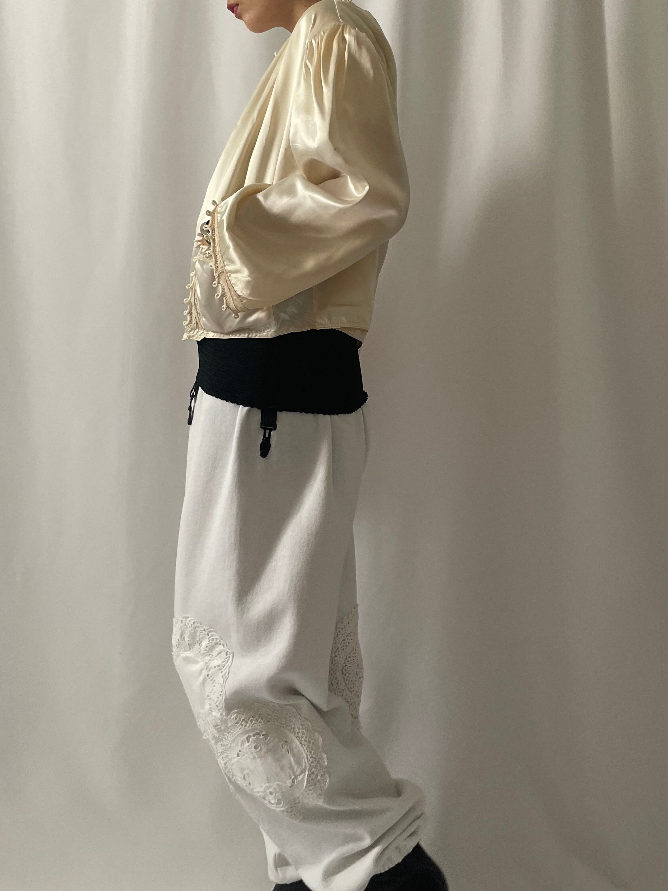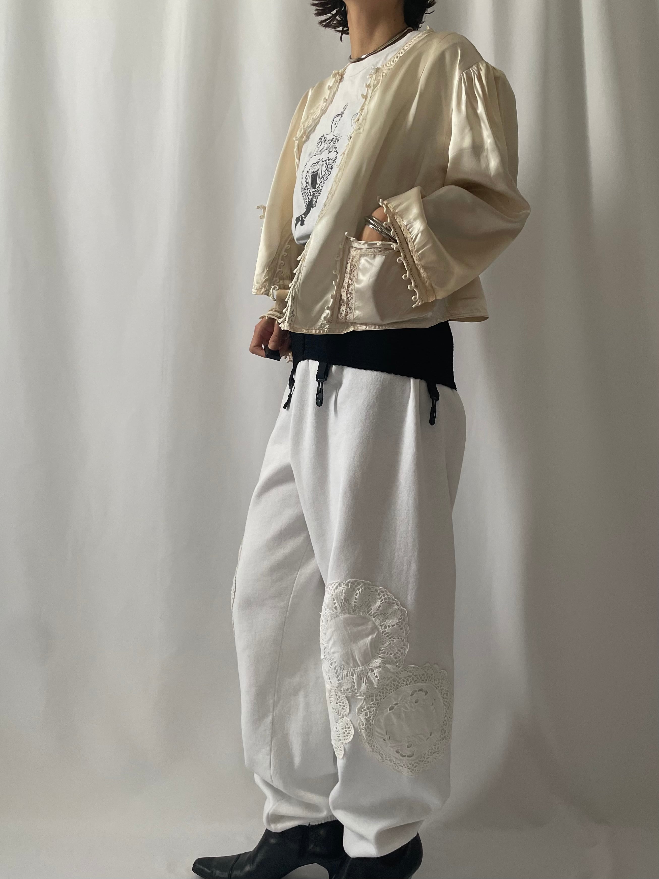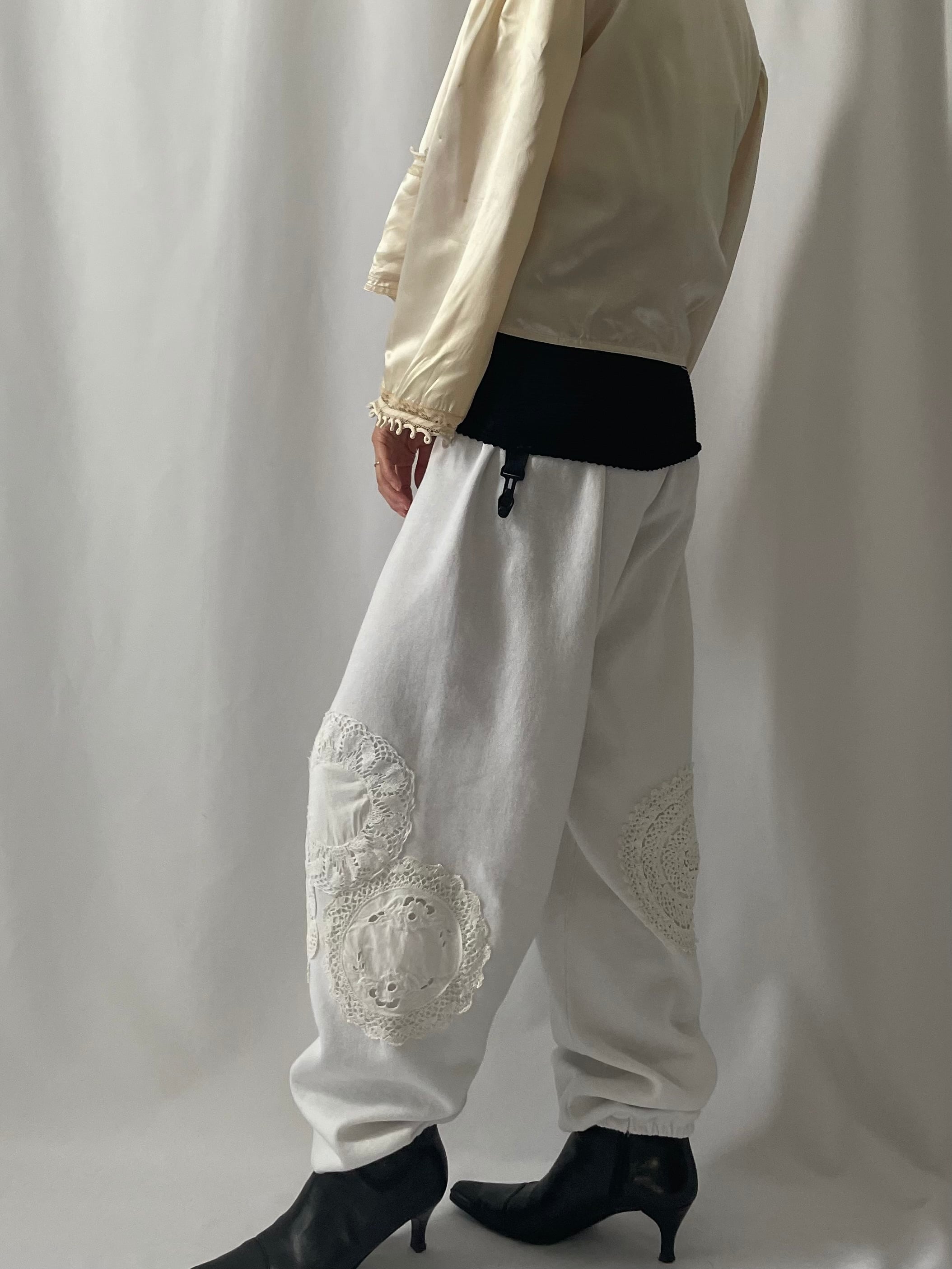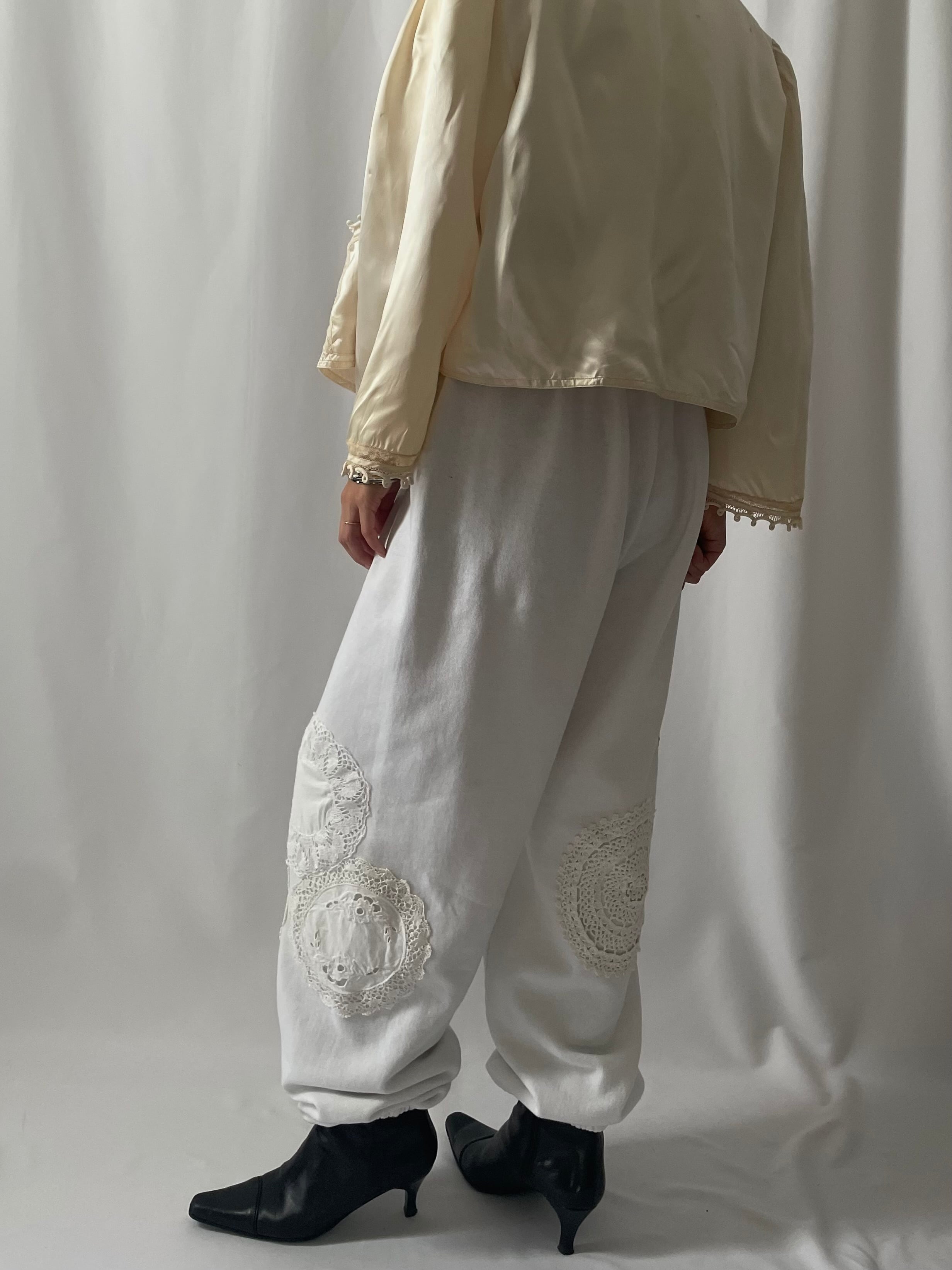 ベースは少し裏起毛で暖かく、肌触りのいいホワイトのスウェットパンツです。