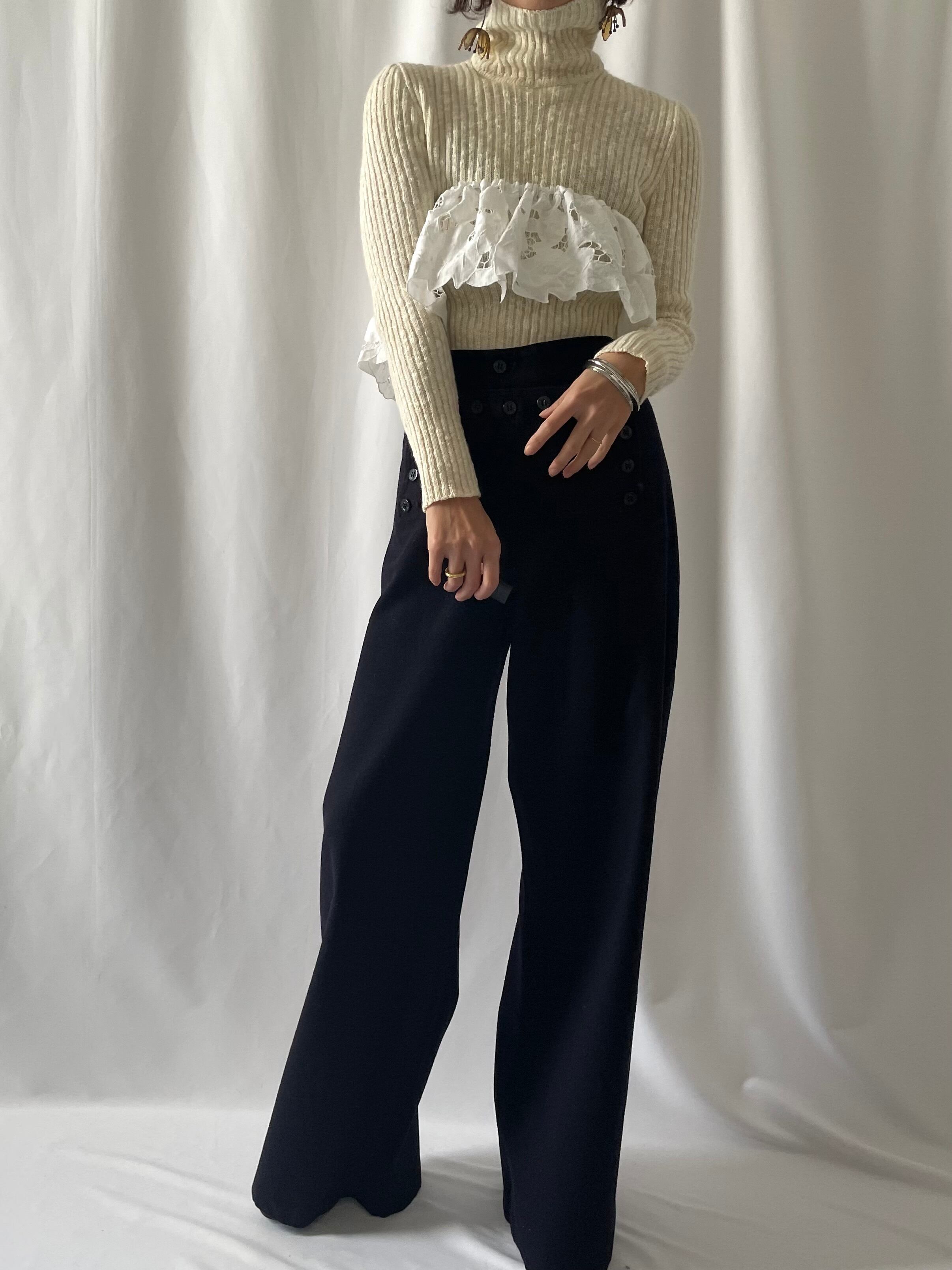 セーラーパンツ特有のフロントデザインはもちろん素敵ですが、