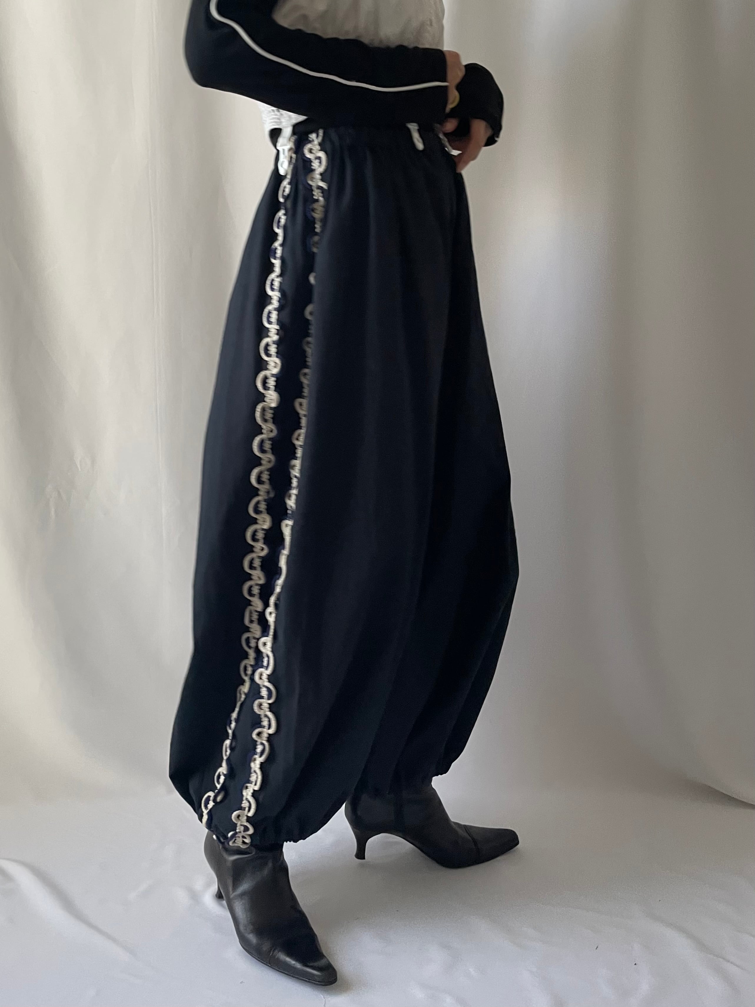 1980's頃のチロルスカートを再構築して仕立てたバルーンパンツ。
