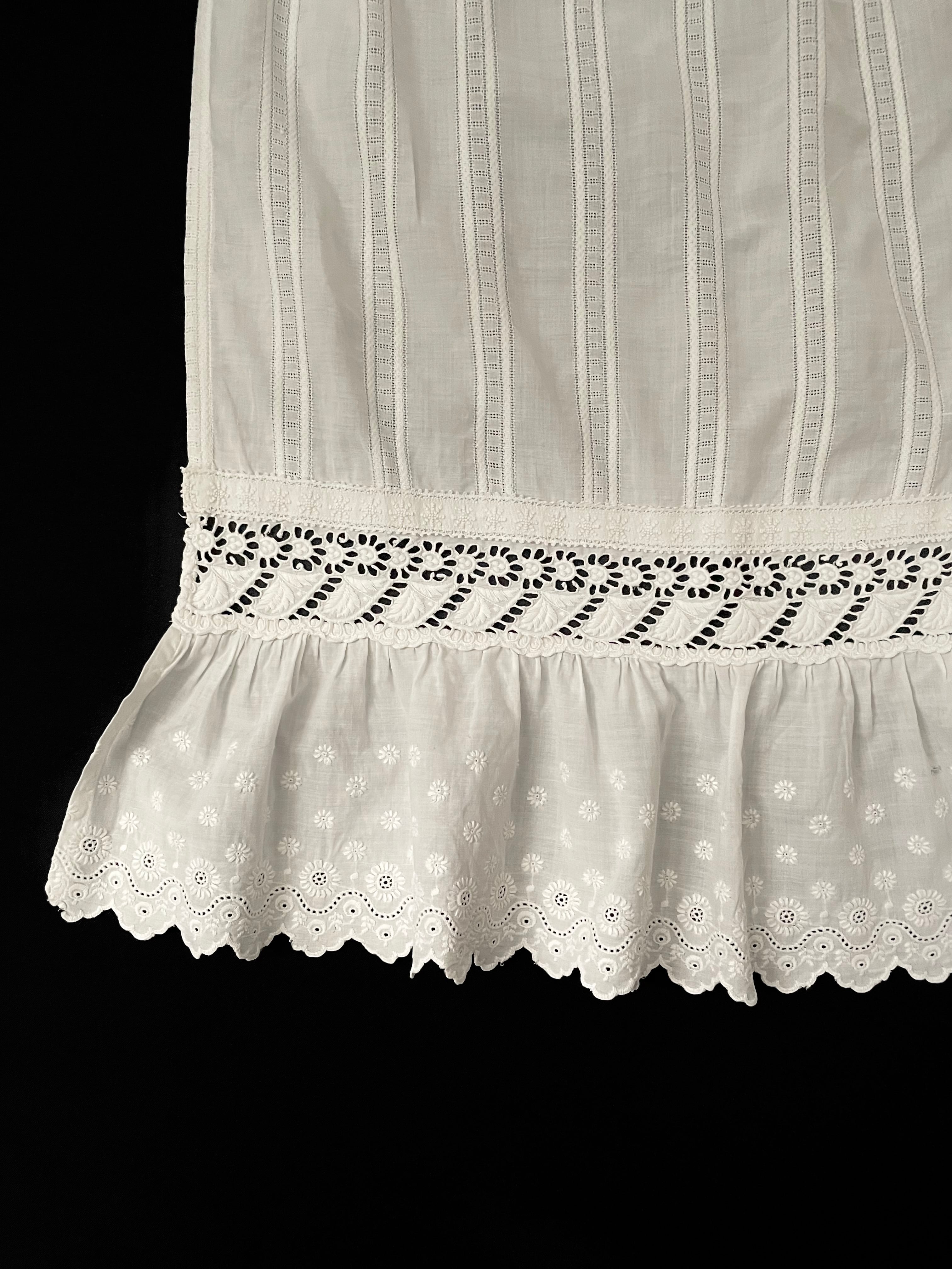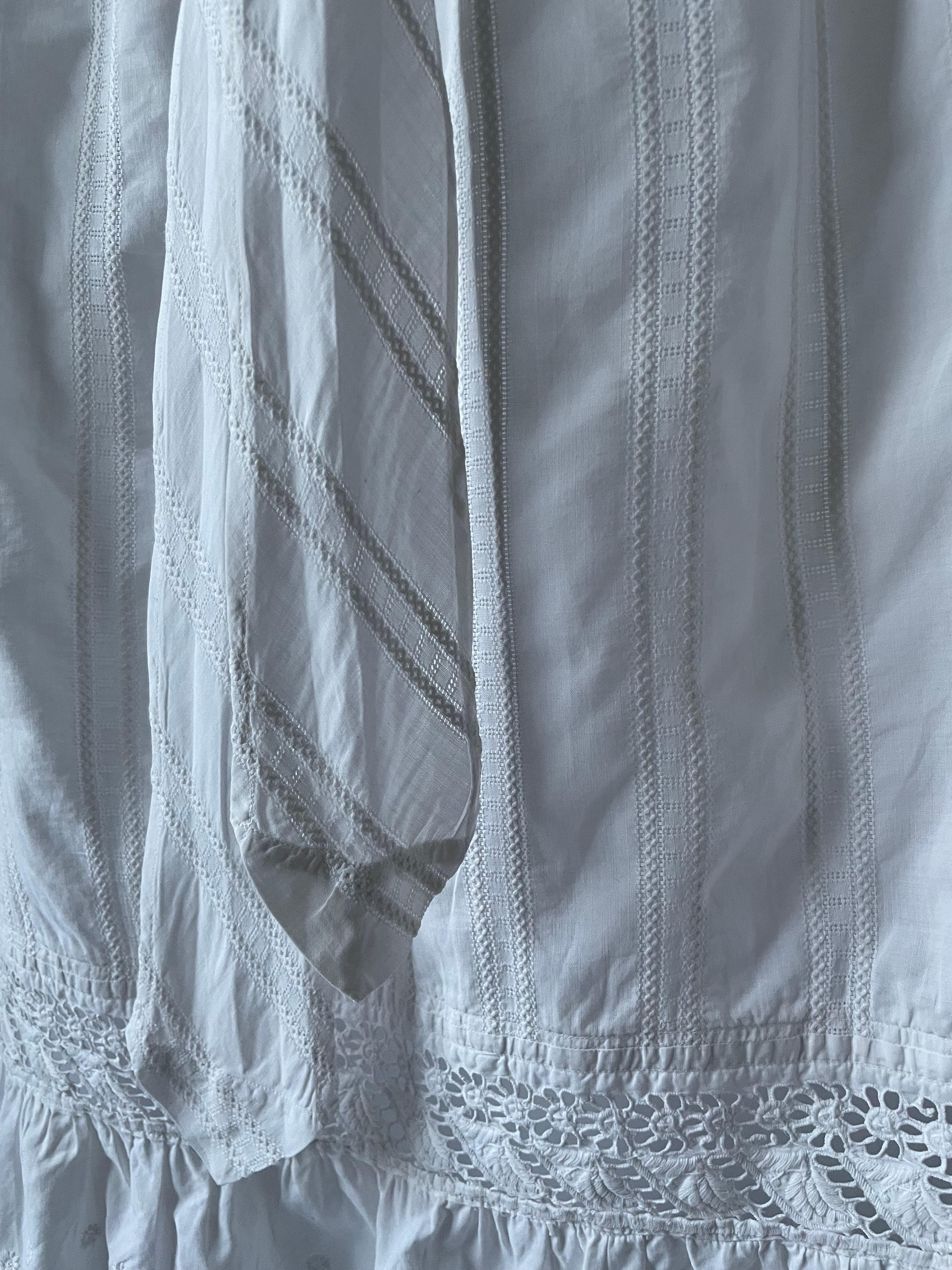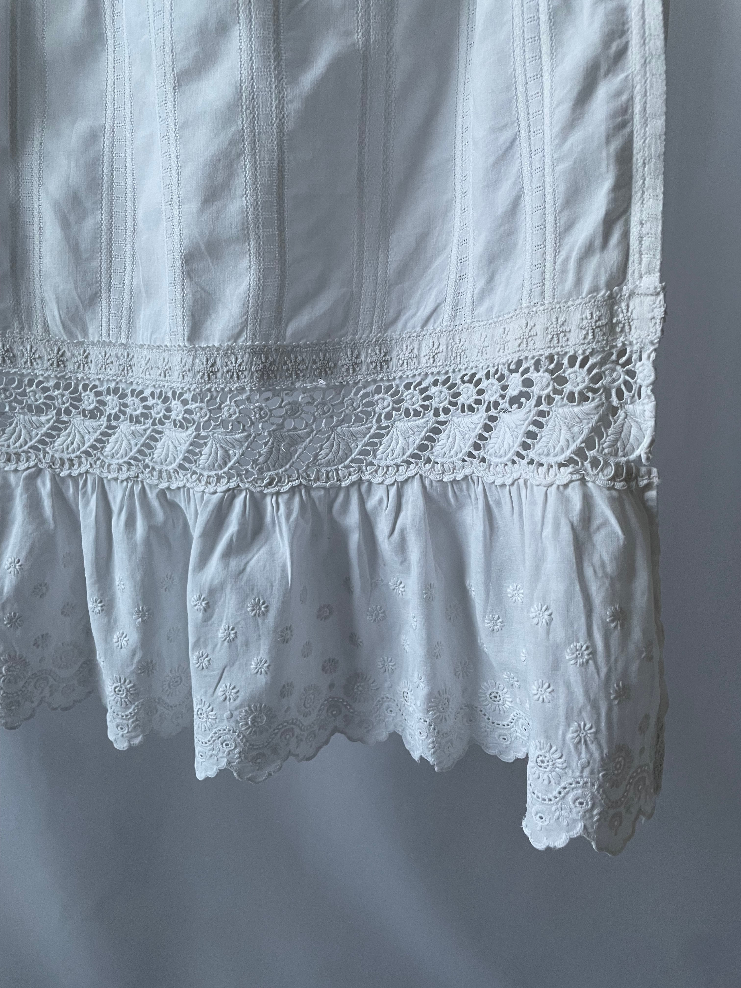 それにカットワークレース、花のエンブロイダリーレースが切り替わった贅沢な1着。