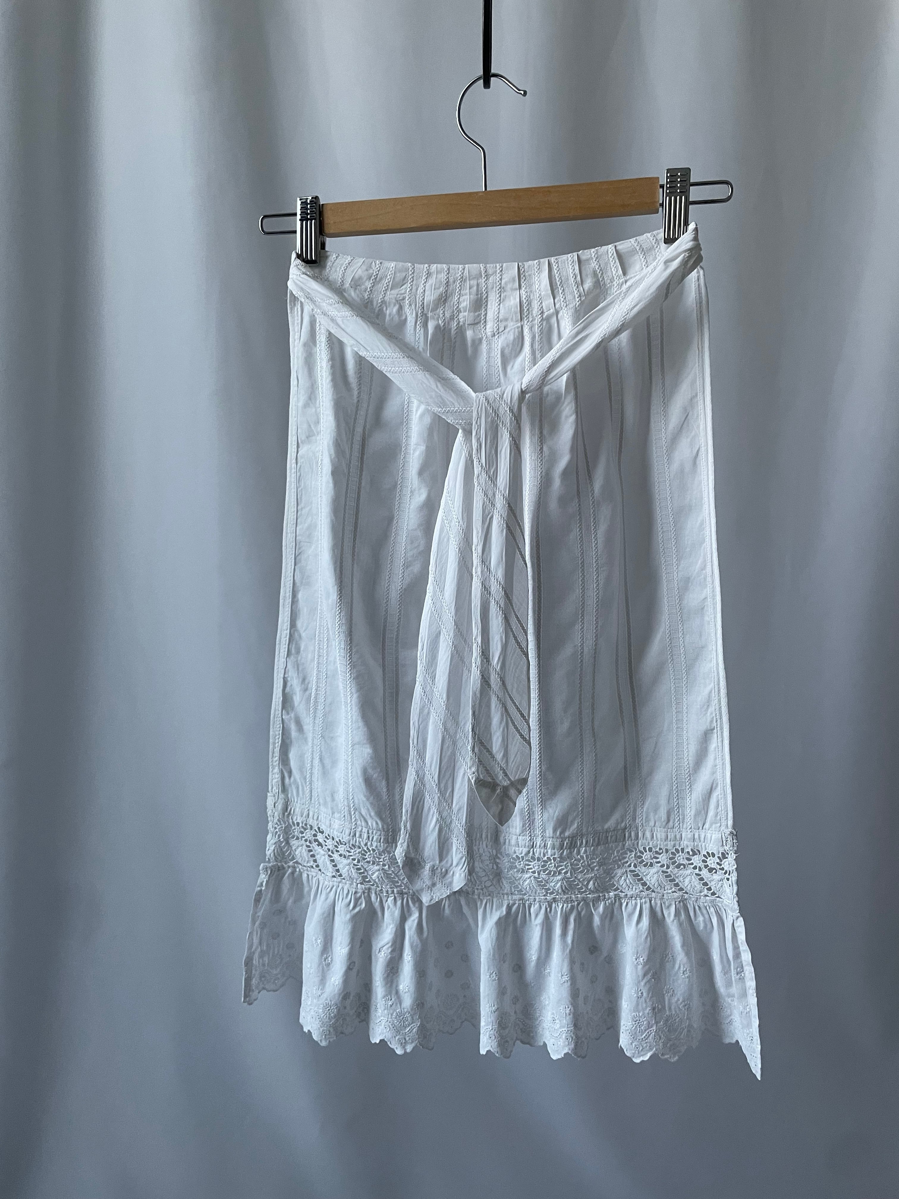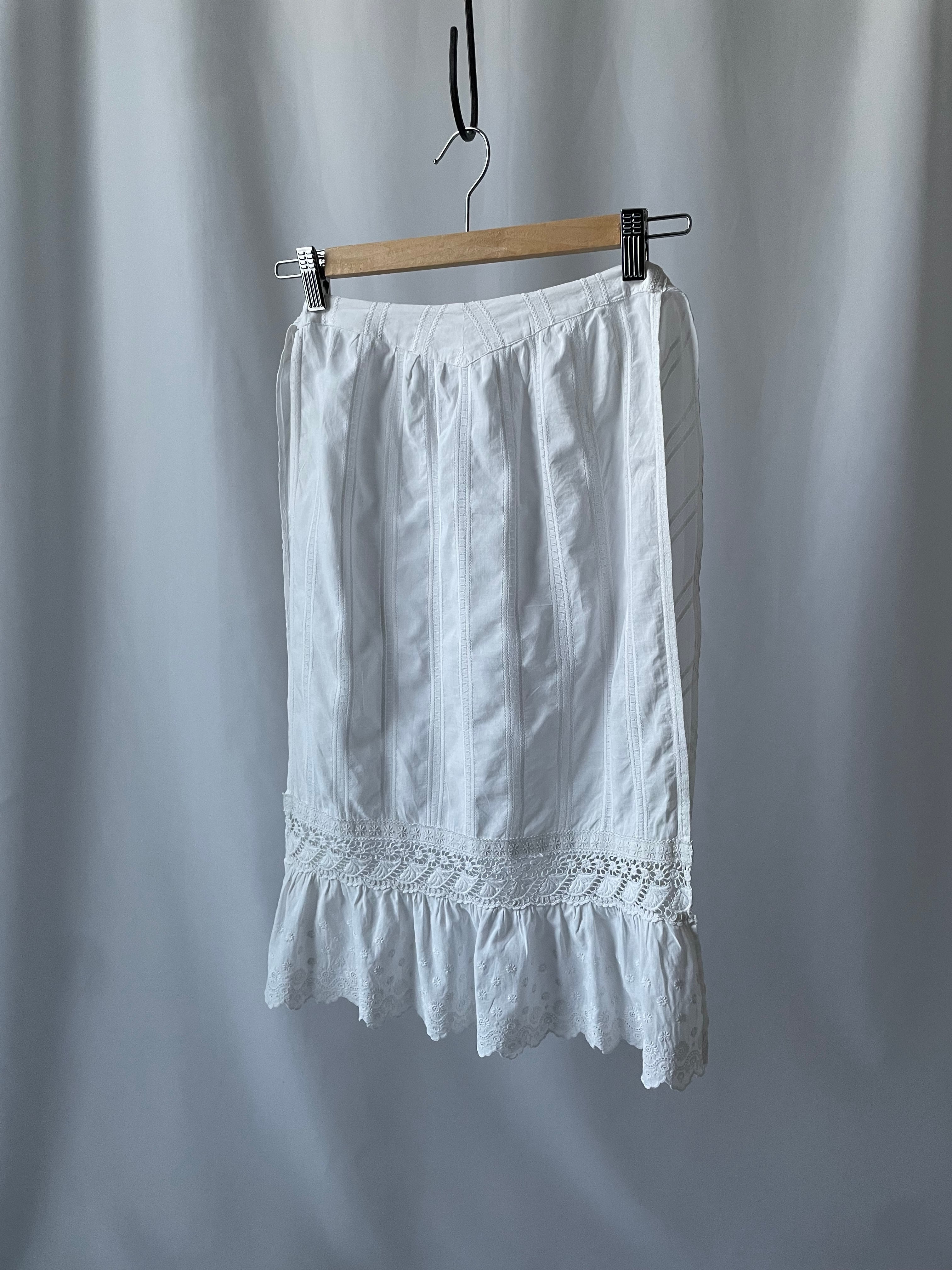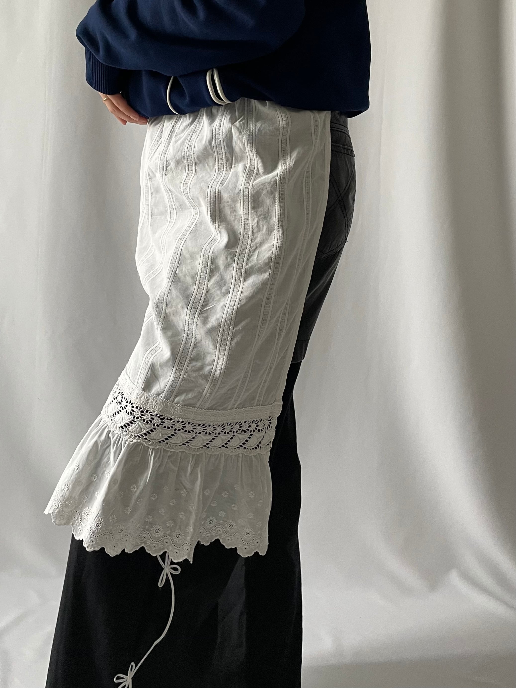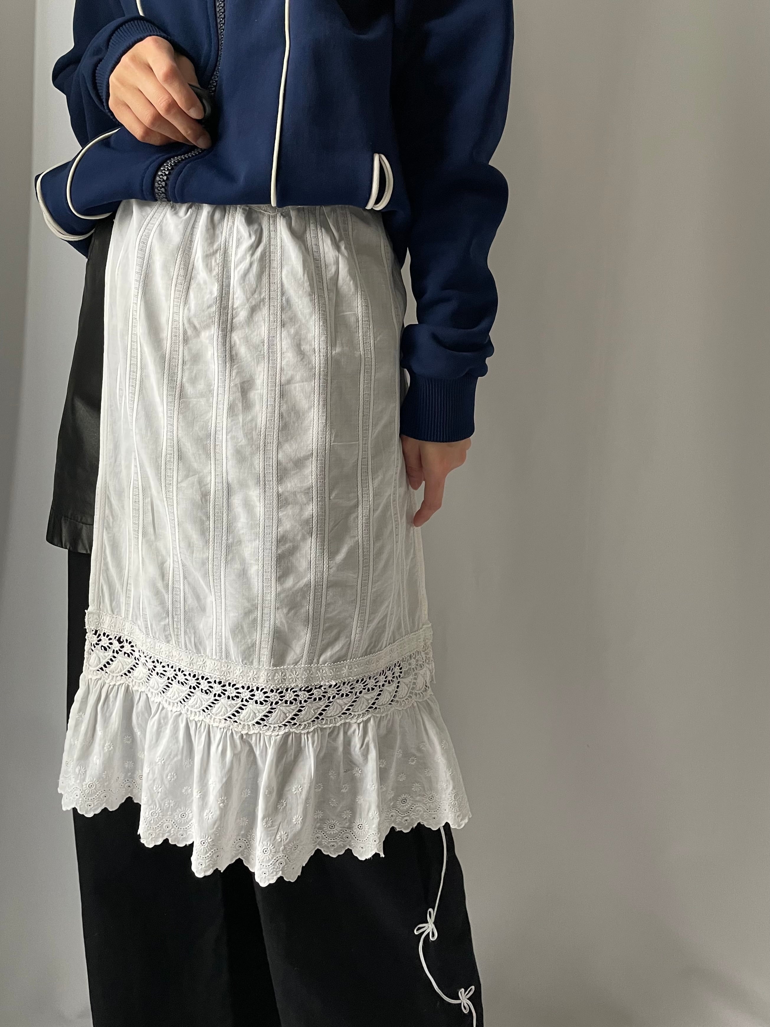 それにカットワークレース、花のエンブロイダリーレースが切り替わった贅沢な1着。