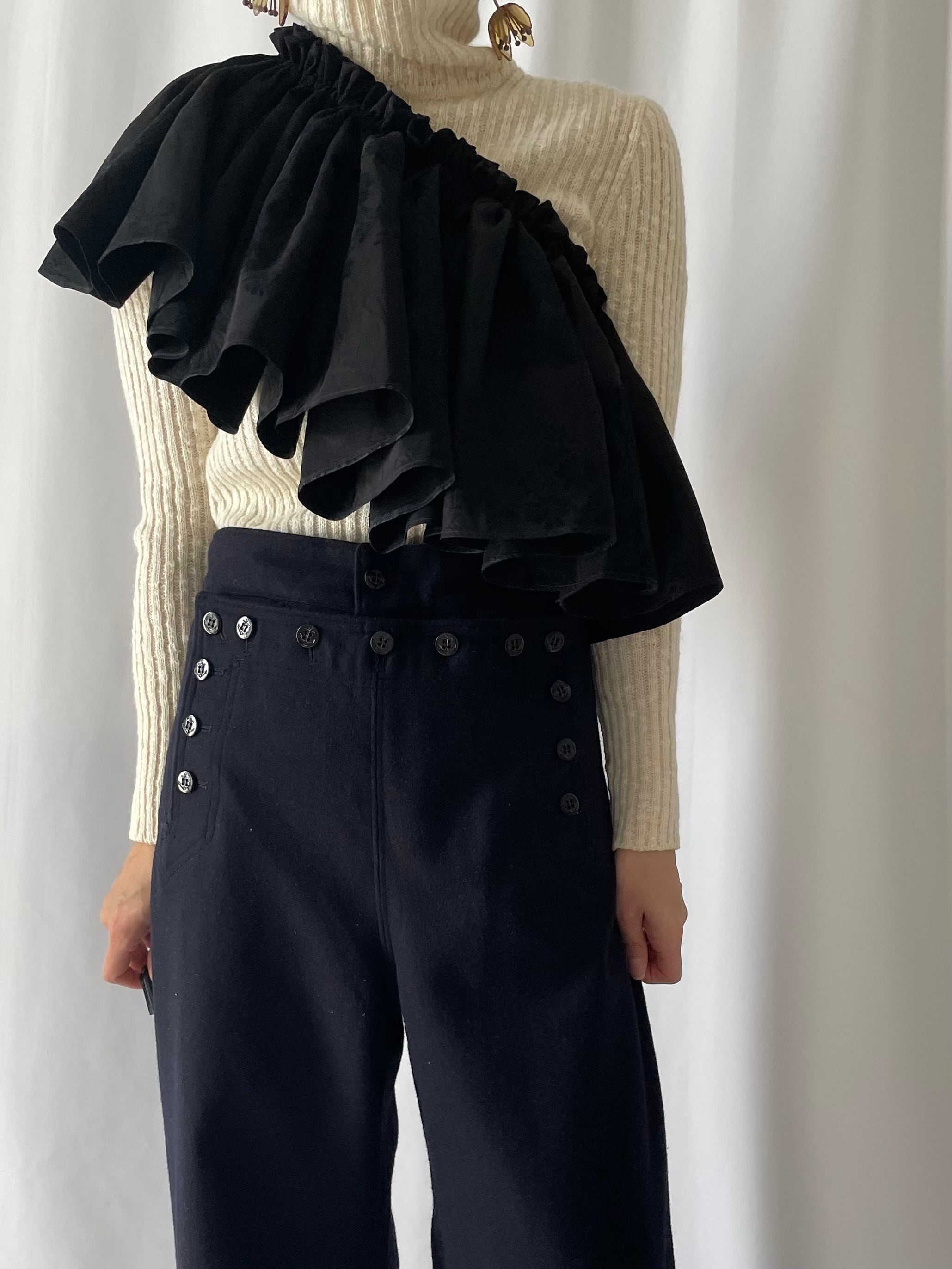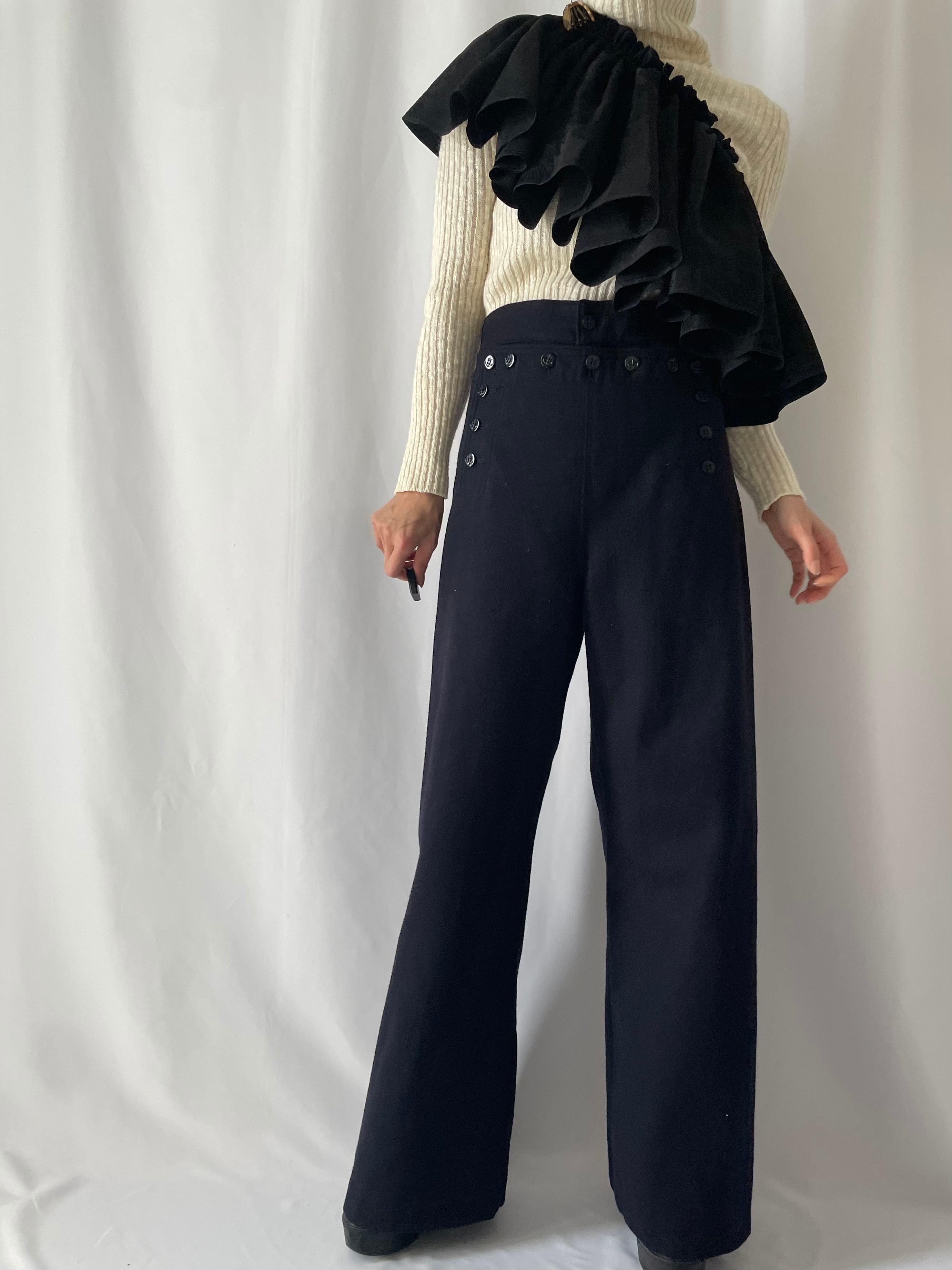 セーラーパンツ特有のフロントデザインはもちろん素敵ですが、