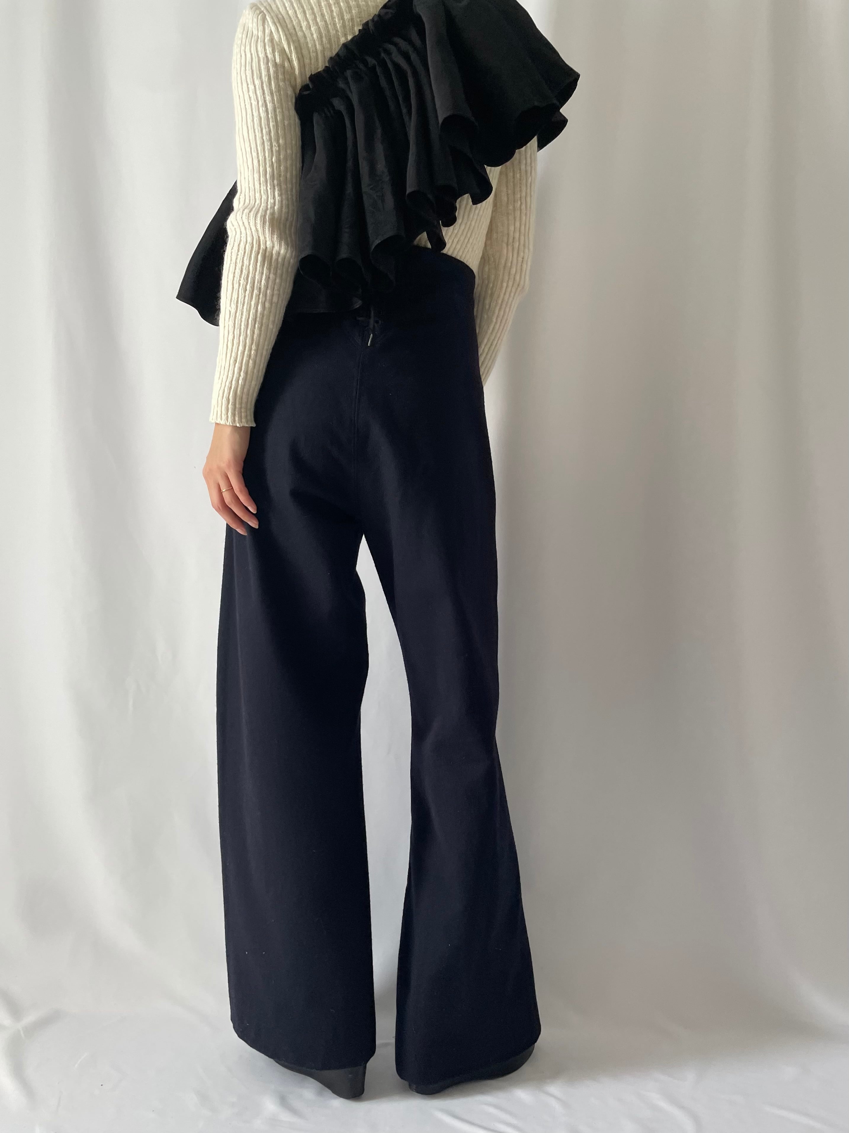 ウール素材からなる綺麗なフレアシルエットがこのパンツの1番の魅力です。