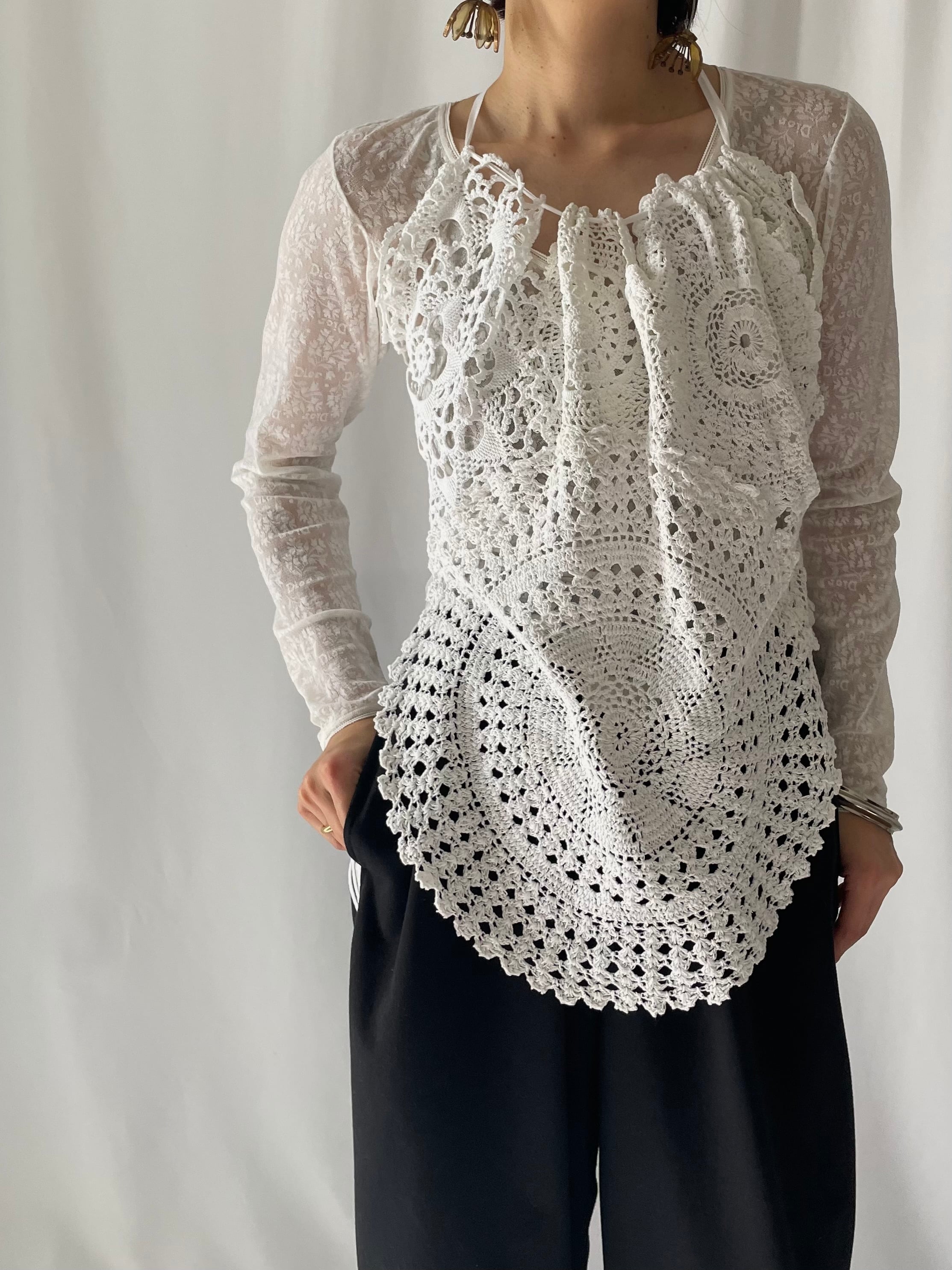 Vintageのクロシェレースドイリーをいつくも重ね合わせたリメイクカラー。