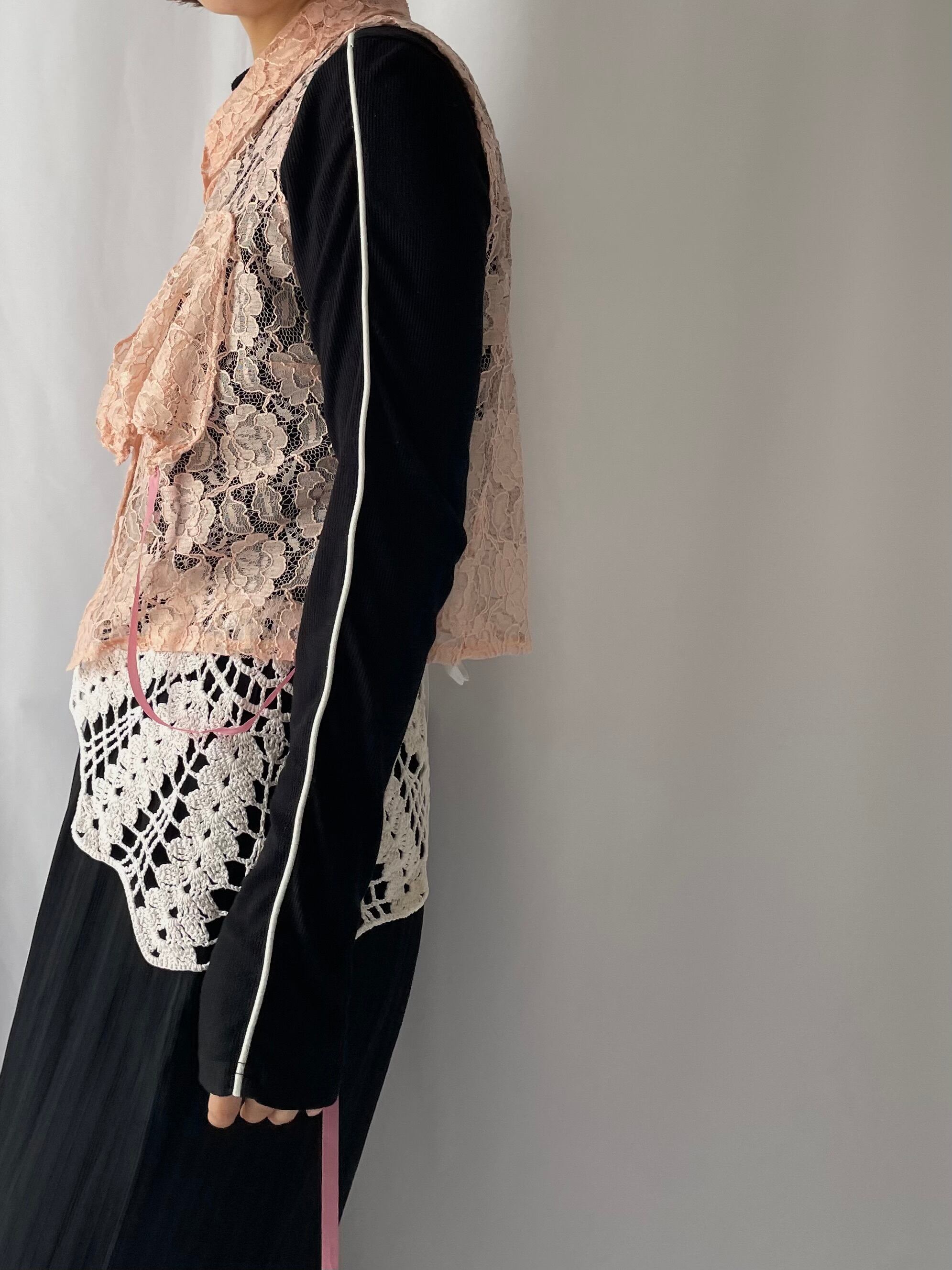 紐でキュッと絞ることができるので胸でビスチェのように着たりも。