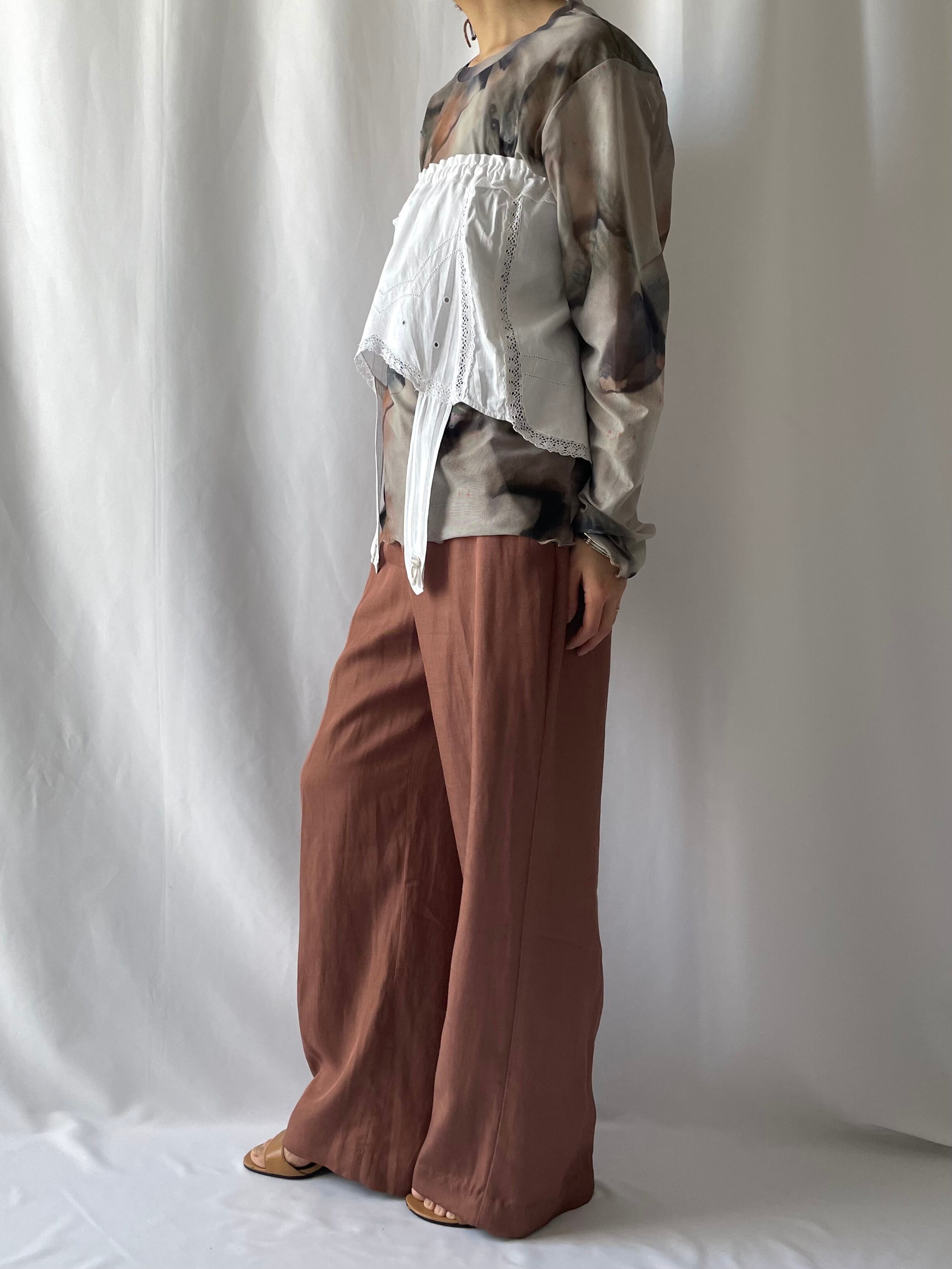 太めでとろっとした素材感のパンツには目がなくて選びました。