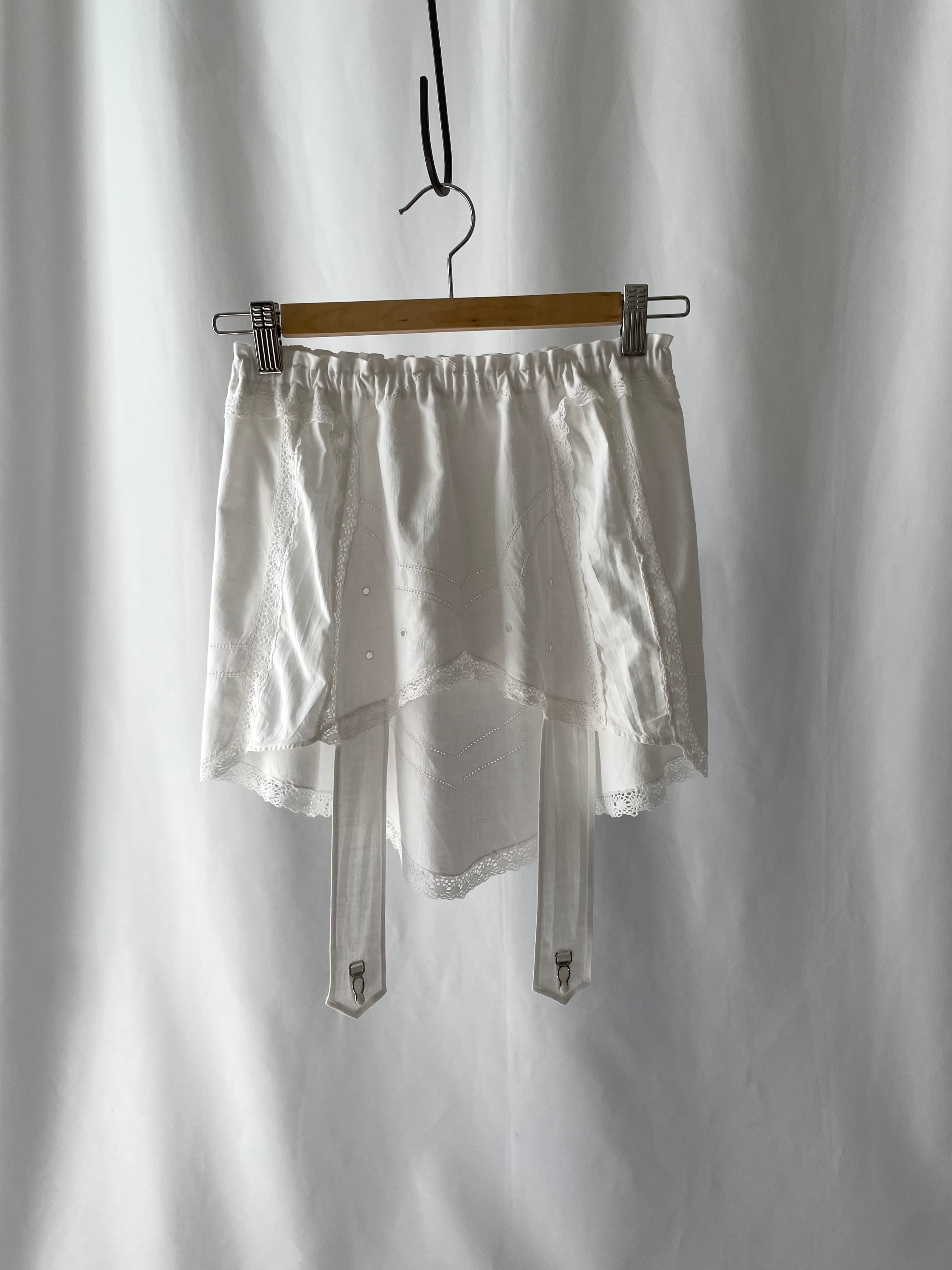ガーターベルトのようにパーツをつけたリボンをフロントに垂らしました。