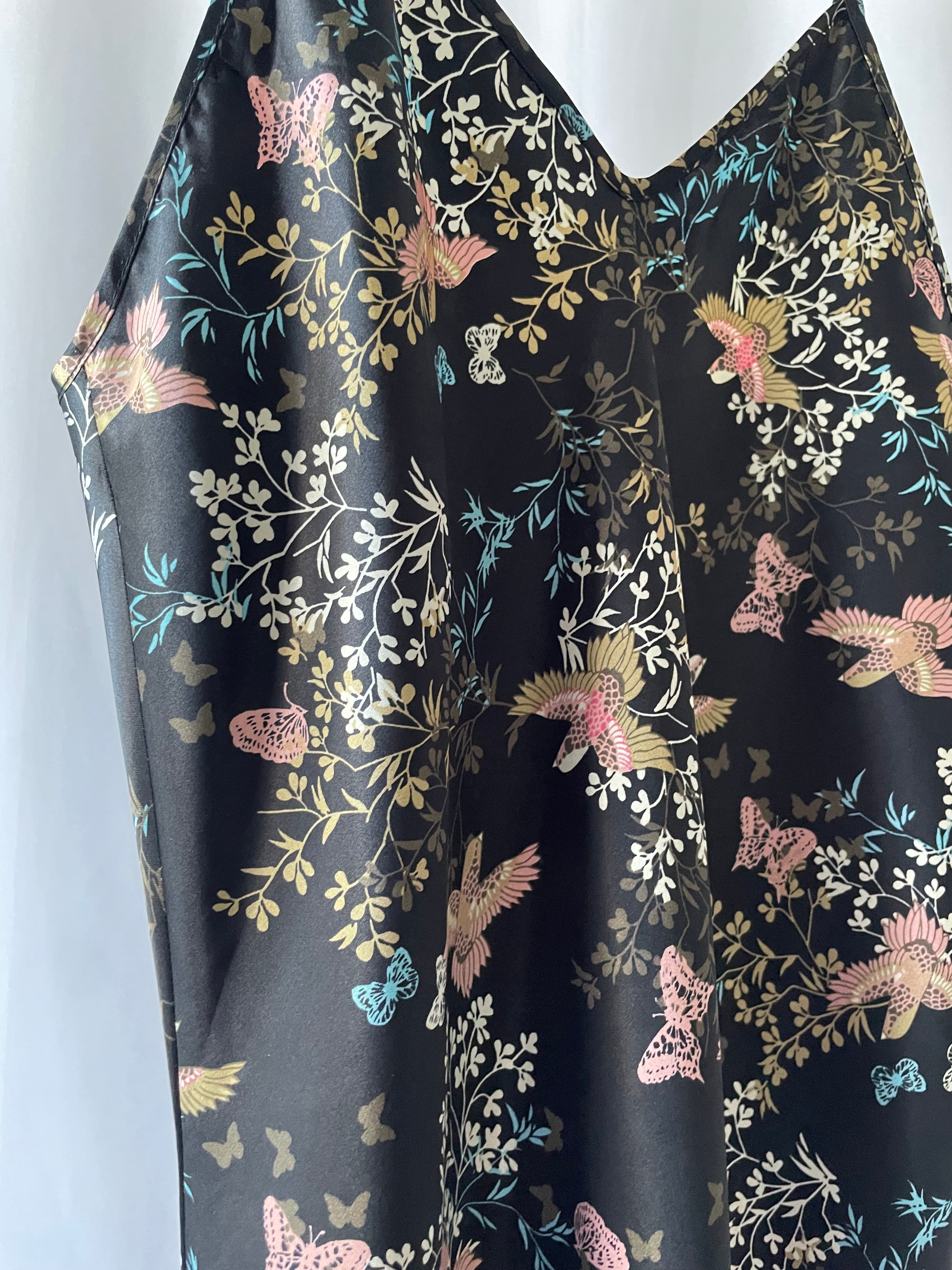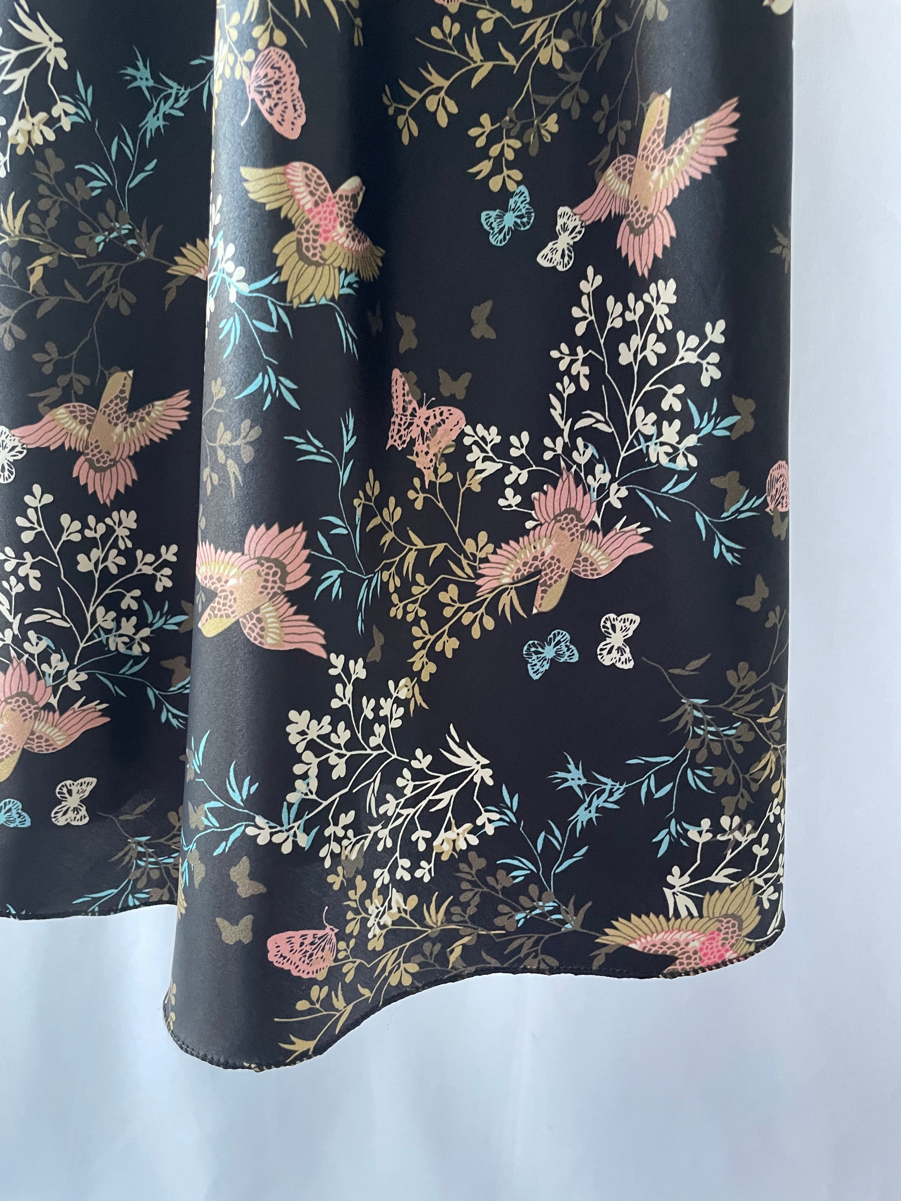 蝶や鳥、葉柄がバランス良くプリントされています。