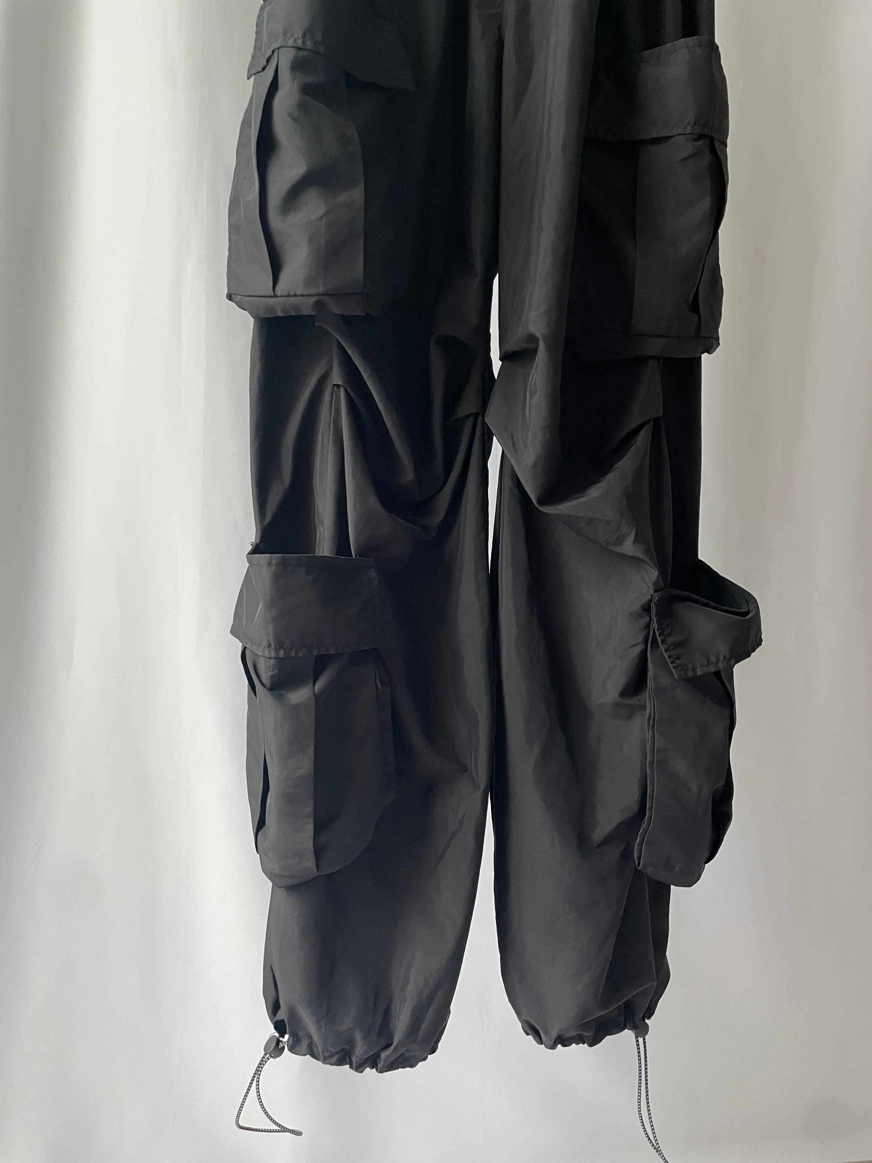 年代は新しそうですが、デザインの効いたブラックカーゴパンツ。