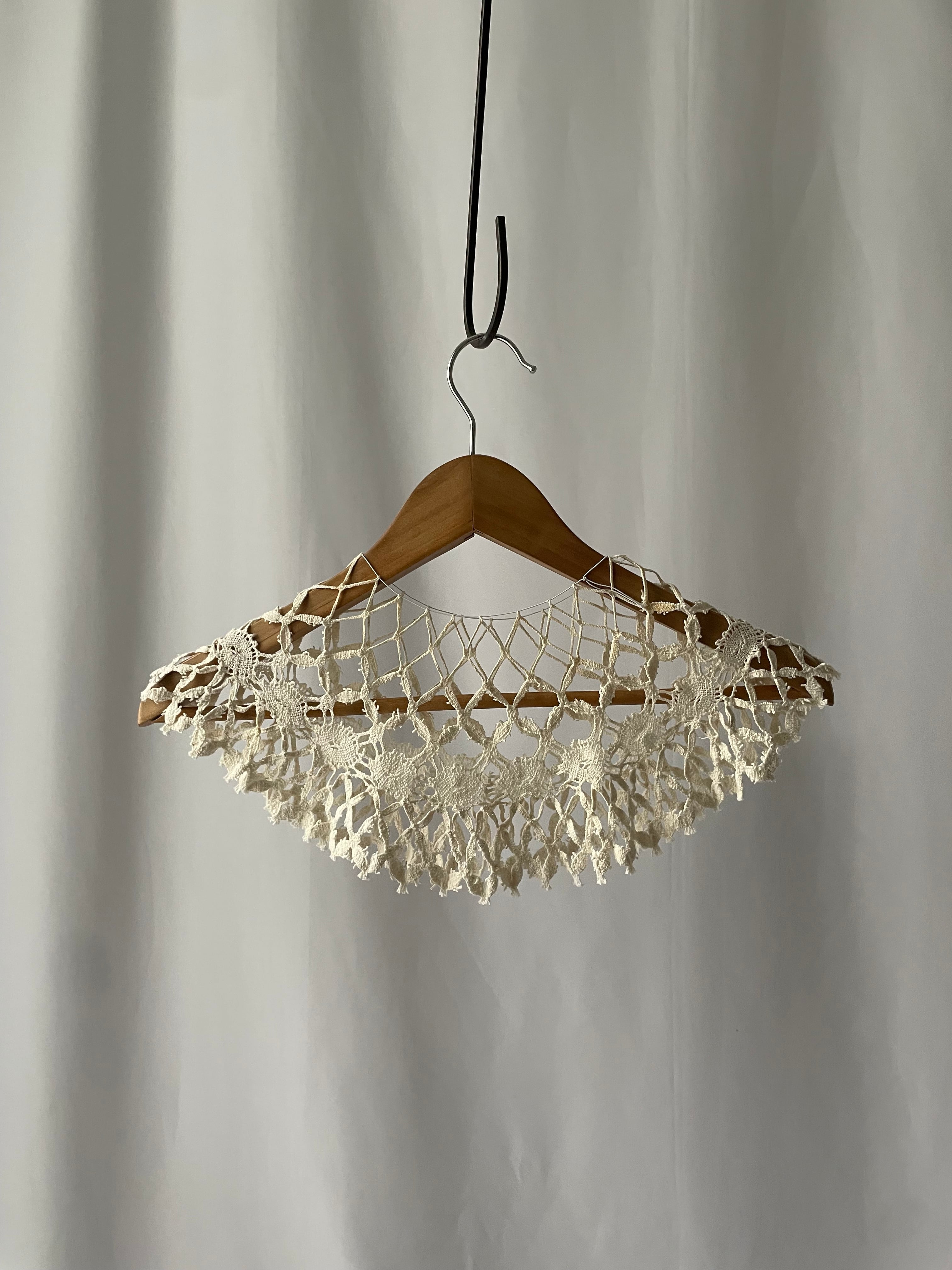 いつものつけ襟とは違い、襟ぐりにゴムが通っており、かぶって着用する仕様です。