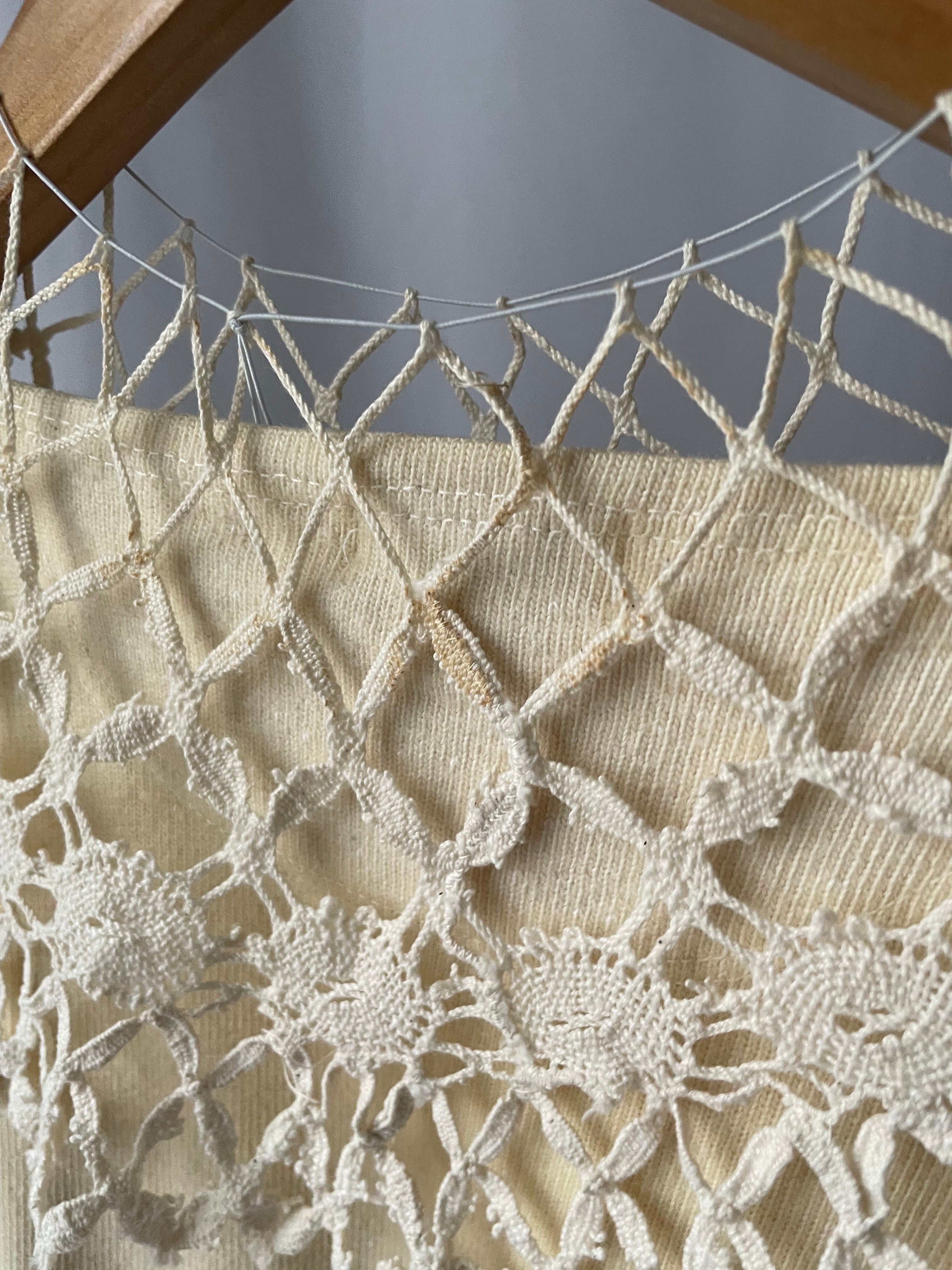 襟ぐりに汚れはありますが、それがまた雰囲気がありアクセサリーとして使ったら素敵かなと思いました。