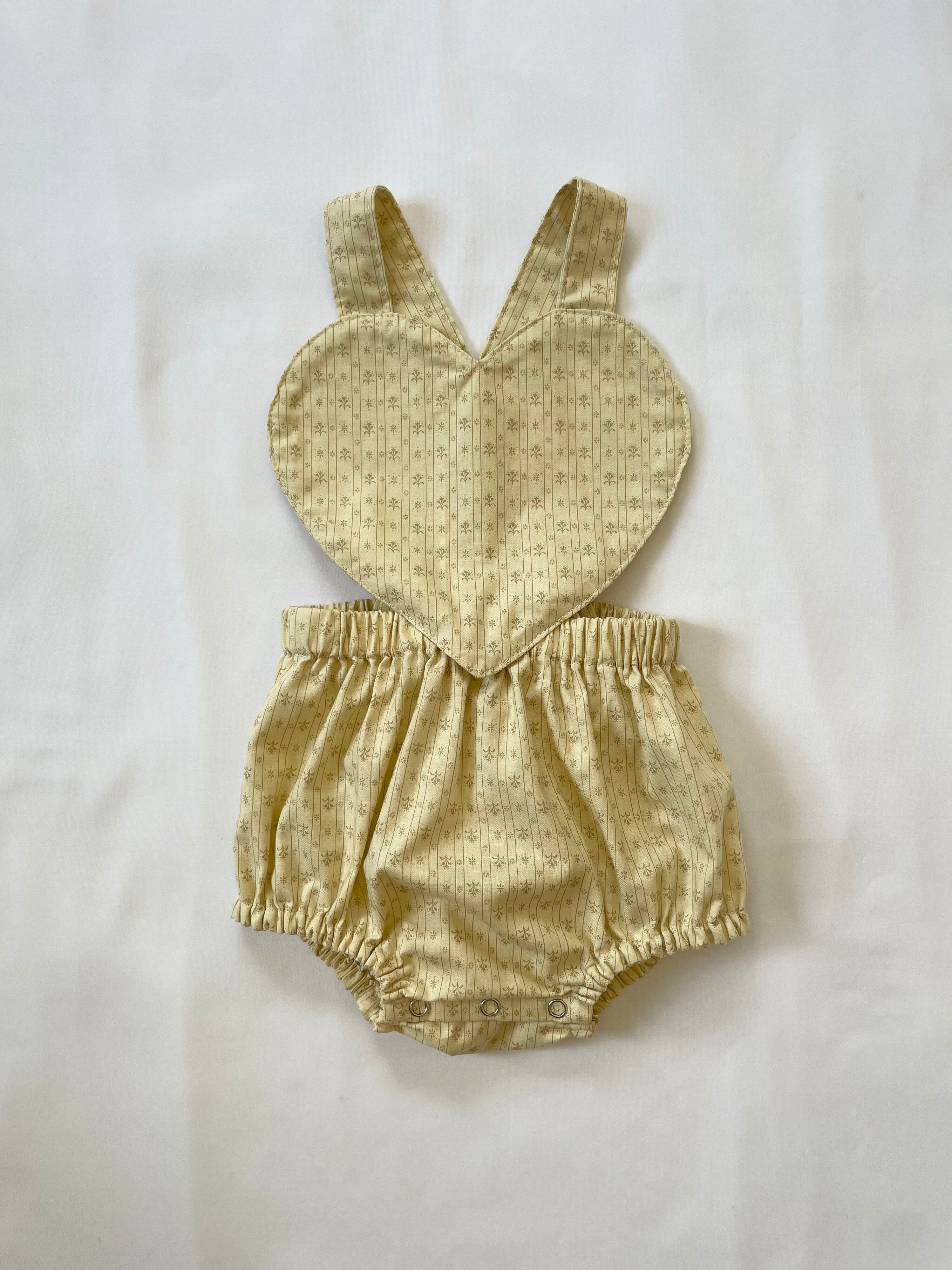 ヴィンテージのプレイウェアをイメージしたハートロンパース。